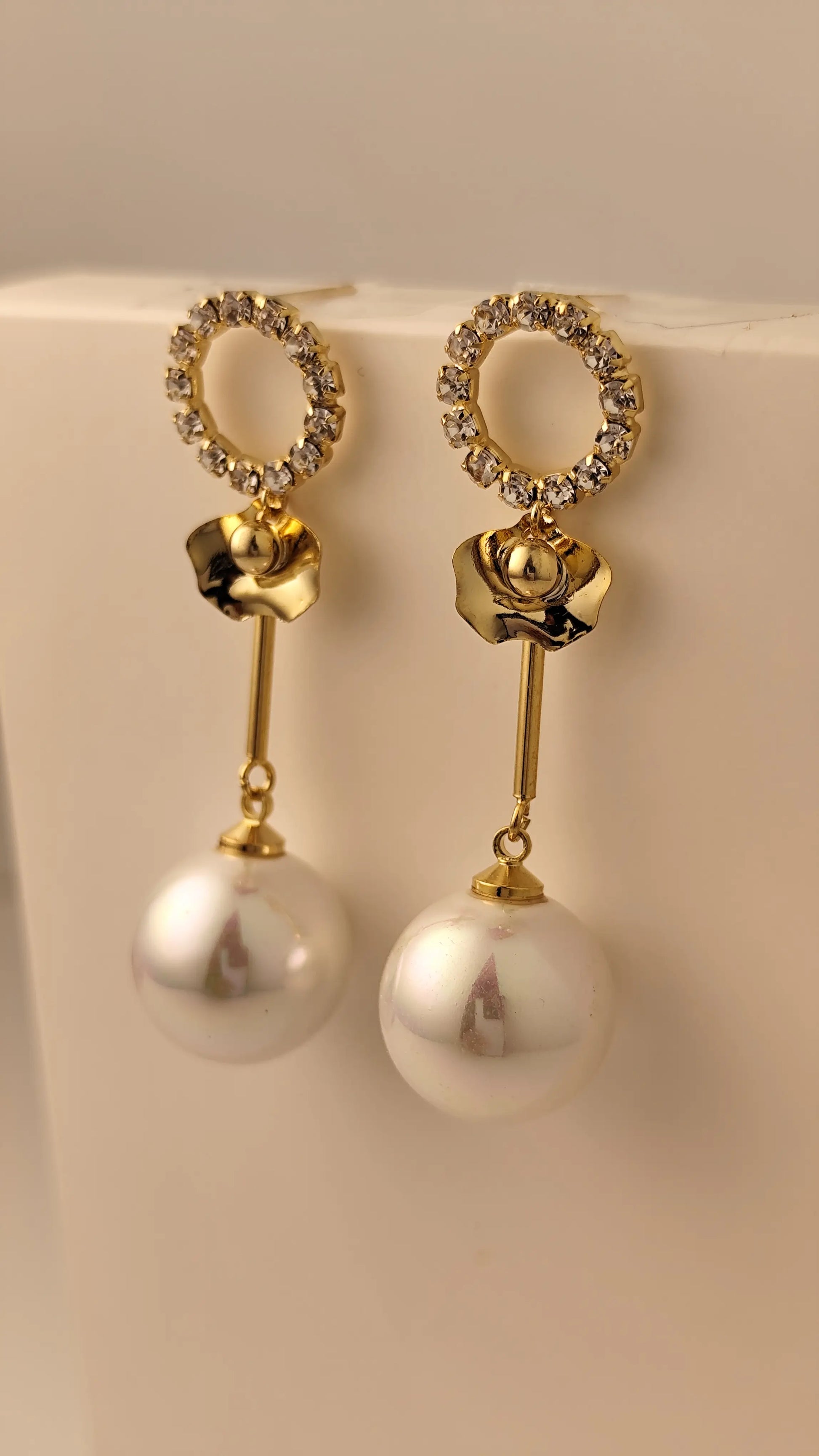 Make a statement with these Gold Crystal Circle Pearl Drop Earrings. Designed with a sparkling crystal-studded circular top, a modern gold accent, and a classic pearl drop, these earrings bring together glamour, elegance, and timeless style. Perfect for festive wear, parties, weddings, or evening outings.
